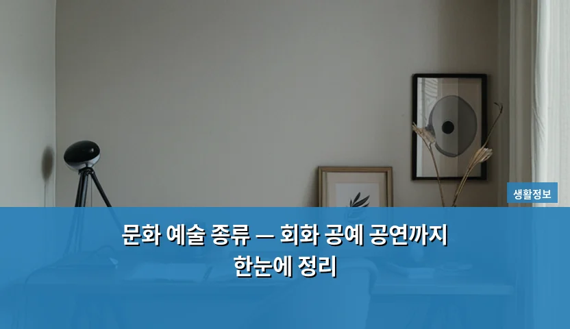그래서 문화 예술 종류를 큰 틀로 정리해 두면 어떤 작품을 만나도 맥락을 잡기 쉽습니다. 작가 이름을 외우기 전에 장르 지도를 먼저 익히시는 걸 권합니다.